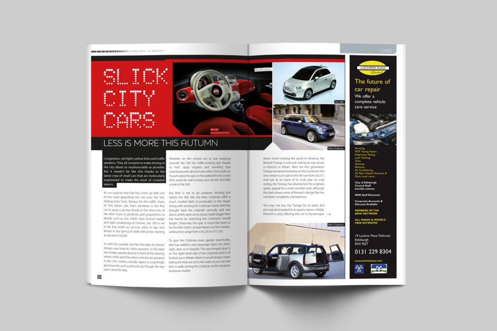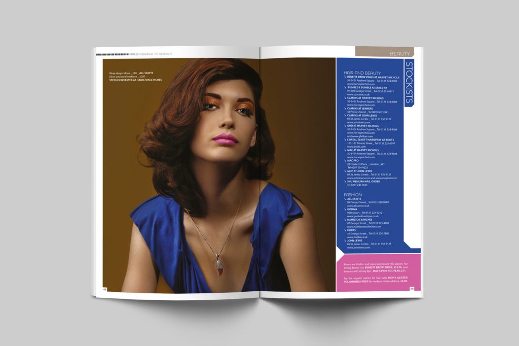 Design and layout of Edinburgh lifestyle and fashion magazine. In collaboration with Eskimo Design.